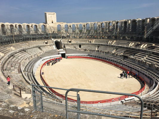 Heute ist der Tage der neuen Frontscheibe. Also früher Vogel - früher noch als die Enten, Schwäne und Fledermäuse auf unserer Terrasse - nach Arles zu unseren Freunden von Carglass. Pünktlich den Wagen abgegeben und dann mit den Öffentlichen ins Zentrum. Um es gleich vorweg zu sagen: Sehr, sehr cool. Obwohl Arles nur knapp 50.000 Einwohner zählt, also etwa soviel wie Lankwitz (42 Tsd.) gibt es hier an wirklich jeder Ecke (sehr gedrängt) etwas Bemerkenswertes zu sehen. Ganz deutliche Empfehlung - auch für einen sehr langen Umweg.