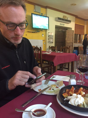Um den Kontrast innerhalb des Dorfes kurz in Bildern zu erläutern: Erstes leichtes Abendessen im Dorfkelch (Cafe Bar Sierra Espuna). Nebenbei, das Essen war gut, aber etwas schwer. Zwei echte Jägermeister mussten mich retten. Nobert und Jörg: Hier wären wir richtig.
