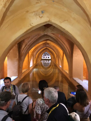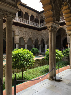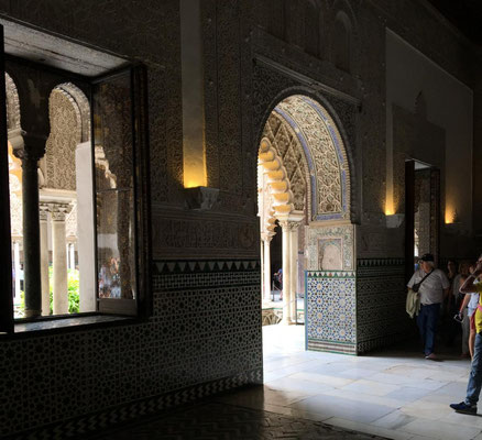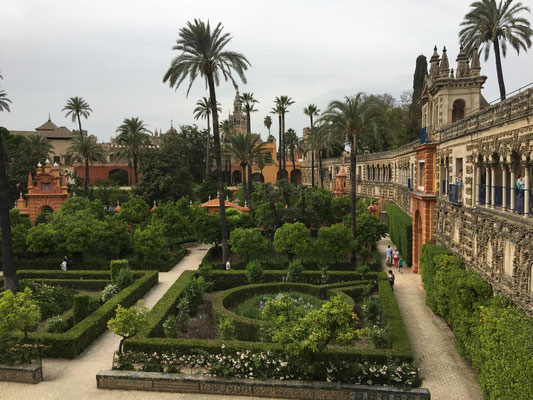 Der Alcázar von Sevilla (Reales Alcázares de Sevilla) ist der mittelalterliche Königspalast von Sevilla. Die Anlage hat eine lange, bis in maurische Zeit zurückreichende Baugeschichte und wird bis heute von der spanischen Königsfamilie, wenn diese sich in Sevilla aufhält, als offizielle Residenz genutzt. Muss man unbedingt hingehen, wenn man in der Nähe von Sevilla ist. Wir finden es ebenso beeindruckend, wie die Alhambra in Granada. Und Tickets immer online, sonst anstellen an der 400m langen Schlange!! Echt wahr.
