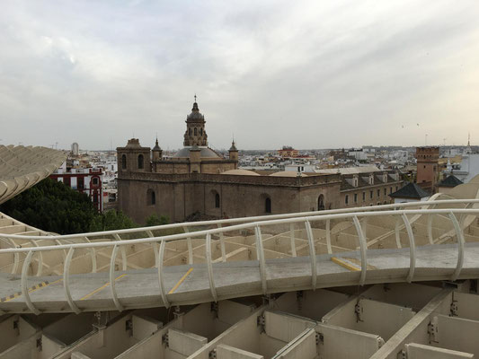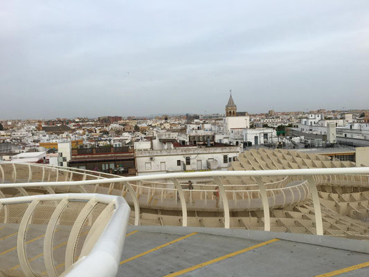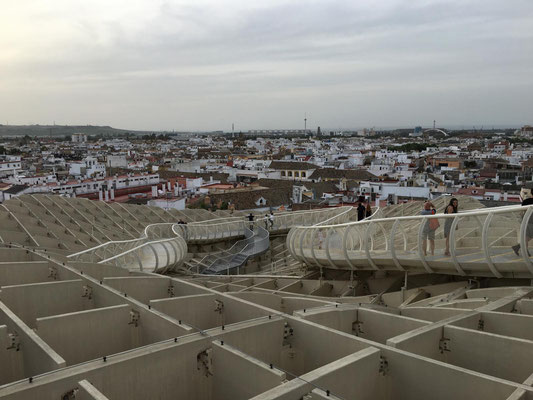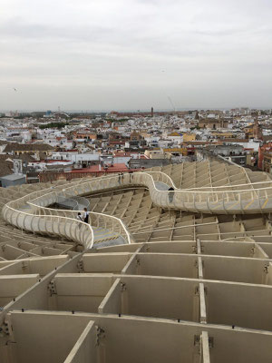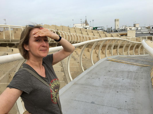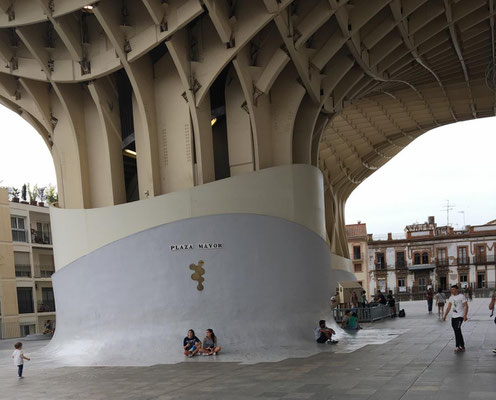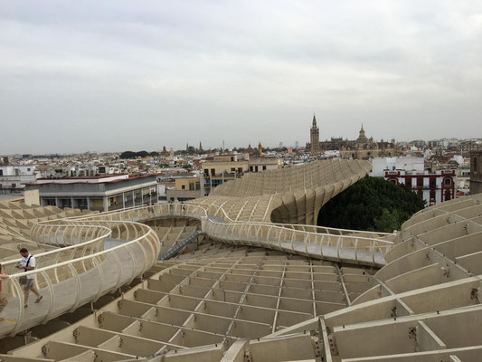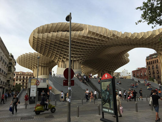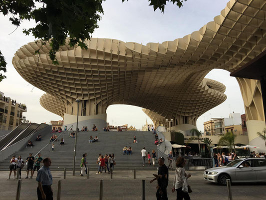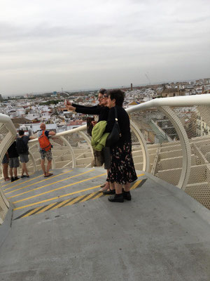 An dieser Stelle einige Bilder von unseren Streifzügen! Euch viel Spaß dabei! Als erstes der Metropol Parasol, eine Holzkonstruktion in der Altstadt. Er wurde von 2005 bis April 2011 auf dem Platz „Plaza de la Encarnación“ errichtet, an der Stelle einer früheren Markthalle aus dem Jahr 1842. Das Bauwerk mit organischen Strukturen wurde durch den deutschen Architekten Jürgen Mayer H. entworfen und ist das neue Wahrzeichen von Sevilla. Es gilt als größte Holzkonstruktion der Welt. In Sevilla wird die Konstruktion auch als Las Setas (übersetzt: Die Pilze) oder als Las Setas de la Encarnación bezeichnet. Was wir auch gelernt haben: Selfie geht immer, auch bei der älteren Generation.