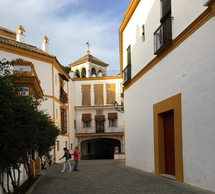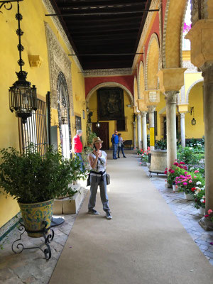 Der Palacio der Duenas! Gala-Leser oder auch -Innen, so wie ich, können es natürlich sofort einordnen. Der Palast Las Dueñas, die Residenz des Herzogs von Alba, ist einer der großen Schätze Sevillas. Ein Beispiel für die charakteristische Adelsarchitektur Sevillas. Mehr als 1.400 Kunstwerke lassen sich hier im Gebäude entdecken, in dem der bekannte spanische Schriftsteller Antonio Machado seine ersten Lebensjahre verbrachte. Die über fünfhundertjährige Historie des Gebäudes kann man bei einem Spaziergang durch seine geschichtsträchtigen Gärten, Salons und Innenhöfe entdecken. Bevor der Palast 1612 in den Besitz des Hauses Alba gelangte, hatte er diverse adlige Eigentümer. Erst seit März 2016 hat auch die Öffentlichkeit Zugang zum Palast mit seinen Patios und Gärten. Wir sagen mal: baff, unbedingt besuchen.
