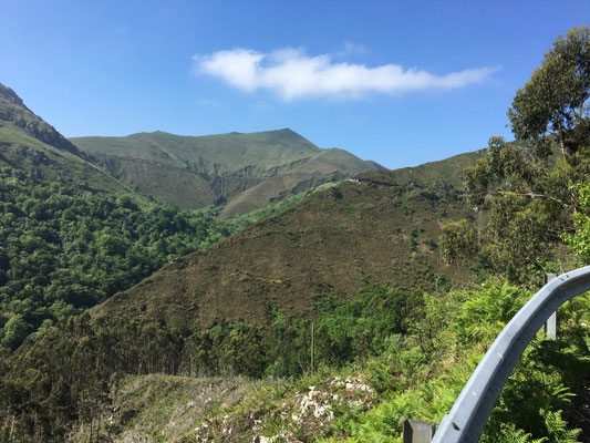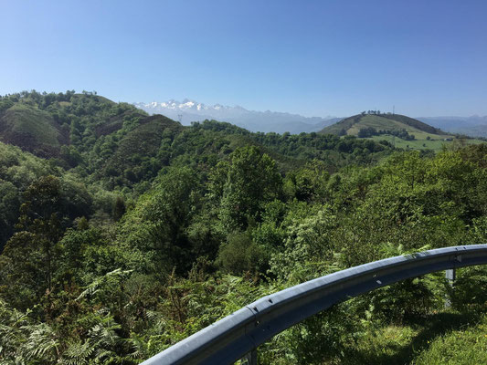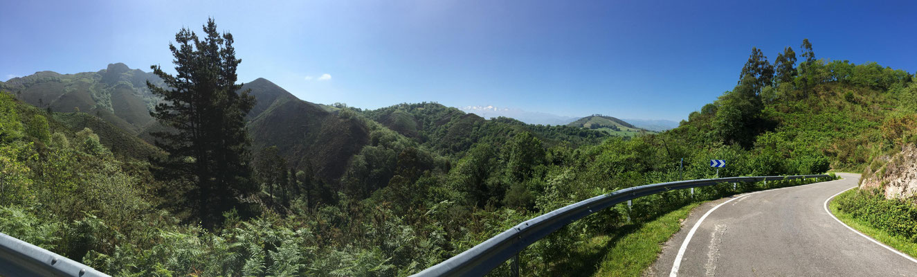 Liebe Radsportgemeinde, es ist ja schon eine Weile her, dass ich davon erzählte, dass es in Spanien kaum Strände, aber doch eine ganze Menge gibt. Hier, im Hinterland Llanes, ballen sich die Sierra nochmal in verschärfter Form (>20). Es gibt eine Gebirgskette hinter der anderen; schon verrückt. Die höchsten Bergketten steigen bis auf 2.500 man und dort liegt noch Schnee.
