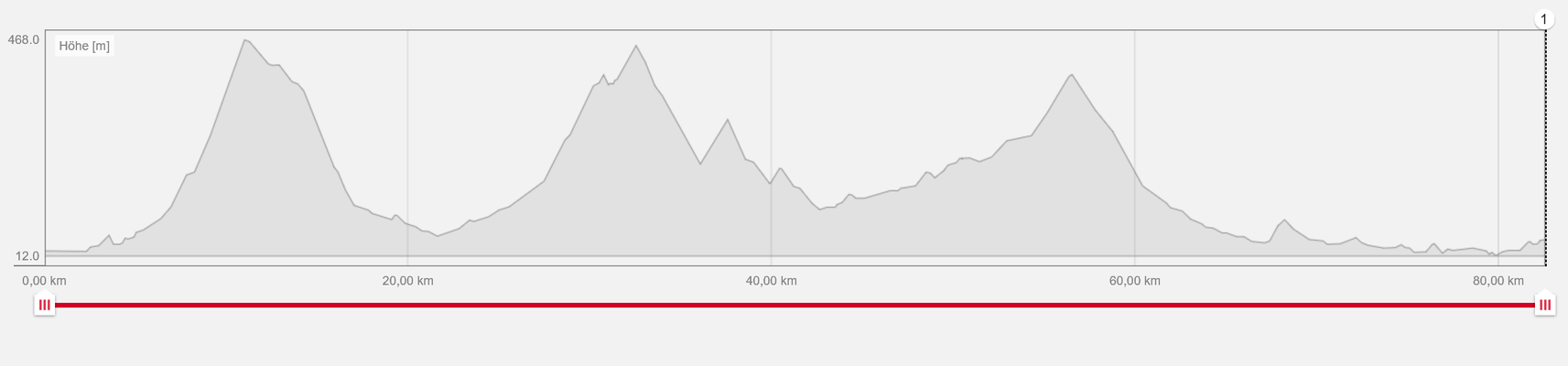 Nach zuviel des Faulenzens und es sich Gut gehen lassens, steige ich heute, nicht in, sondern auf den Esel und versuche mich mal an ein oder zwei Gebirgsketten der Flachlandtirolerkategorie (bis 500m). Etwa 80 km, mit ca. 1450 Höhenmetern stehen auf dem Programm. Die Tour läuft - nach der langen Pause - super, die Landschaft und die (einsamen) Straßen sind zum Zunge schnalzen. Eine der schönsten Touren, die ich je gefahren bin, sehr sehr empfehlenswert.