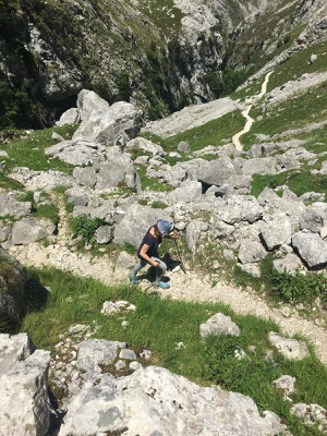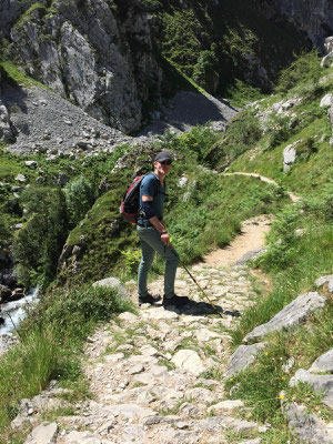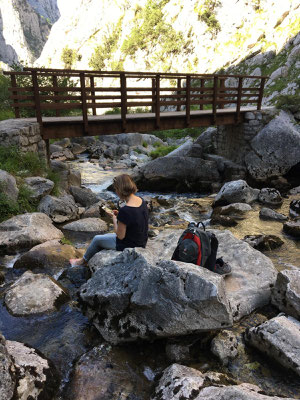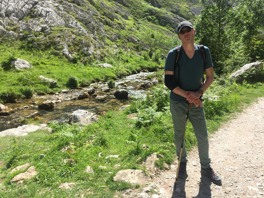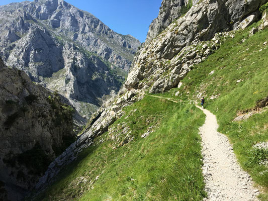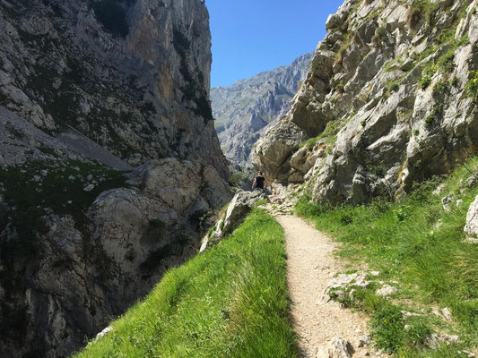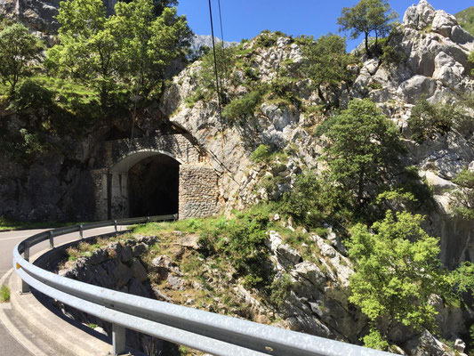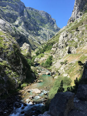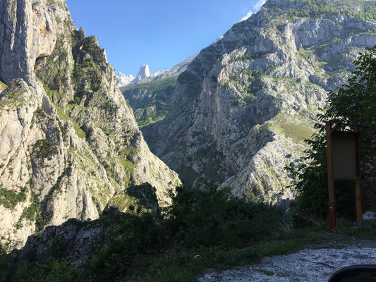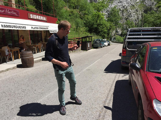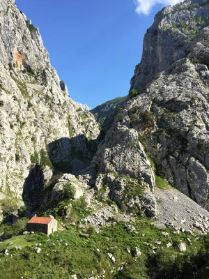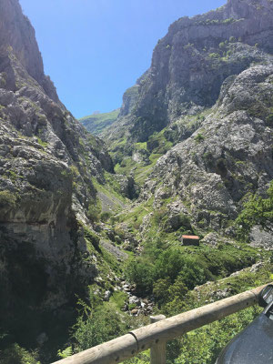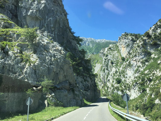 Wir arbeiten die Empfehlungen Pepes ab und erkunden das Hinterland von LLanes (ausgesprochen Janes). Es geht in die Berge. Ziel ist ein kleines Bergdorf namens Blunes (42 Einwohner). Bis 2001 wurden die Einwohner über einen Eselpfad mit allem versorgt, was sie zum Leben benötigen. Straßen ins Dorf gibt es nach wie vor nicht, allerdings existiert seit 2001 eine Standseilbahn, die täglich mehrmals zwischen Tal und Dorf verkehrt. Wir, gut gerüstet mit Wanderstöcken, nehmen den Eselpfad. Eine wirklich schöne Tour durch eine richtig tolle Landschaft. Anmerkung für Franky: Hier gibt es ziemlich große Kletterfelsen!