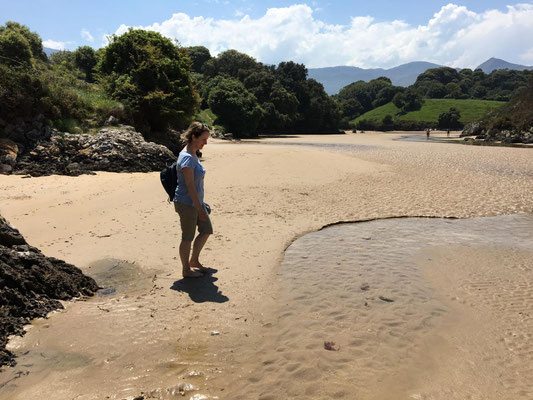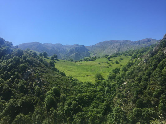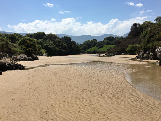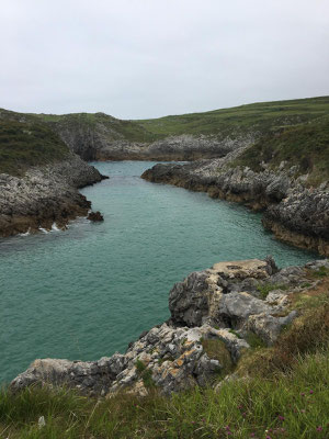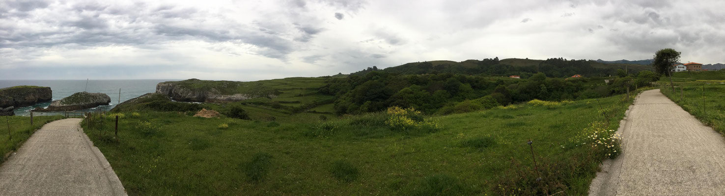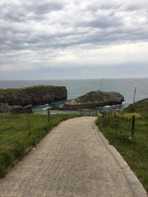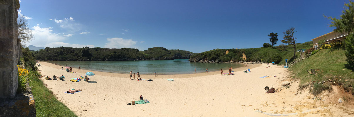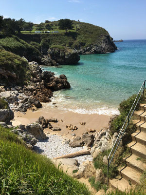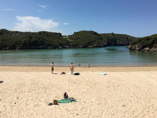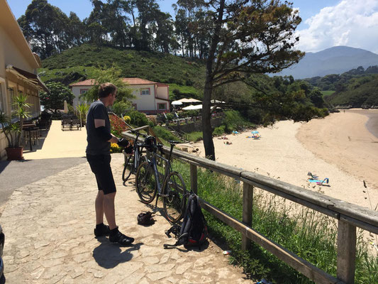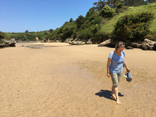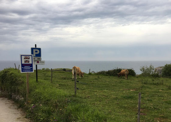 So traben direkt hinter unserem kleinen Reihenhaus Kühe, mit großen Glocken behangen, laut bimmelnd über die Wiesen. Ein paar Meter dahinter sind schon die Klippen, direkt gefolgt vom Strand. Alles picobello sauber, sieht aus wie in der Schweiz. Wenn man vom Strand ins Land schaut, gibt es zur Abwechslung: Berge. Mehrere Bergketten hintereinander. Es ist beeindruckend, was sich dem Auge bietet. Der Norden Spaniens ist landschaftlich das Schönste, was uns auf dieser Reise unter die Augen gekommen ist. Absolute Empfehlung.