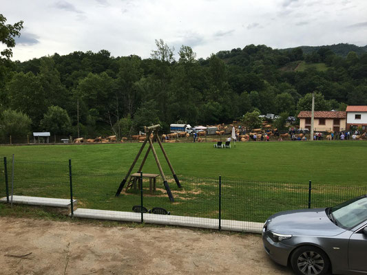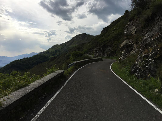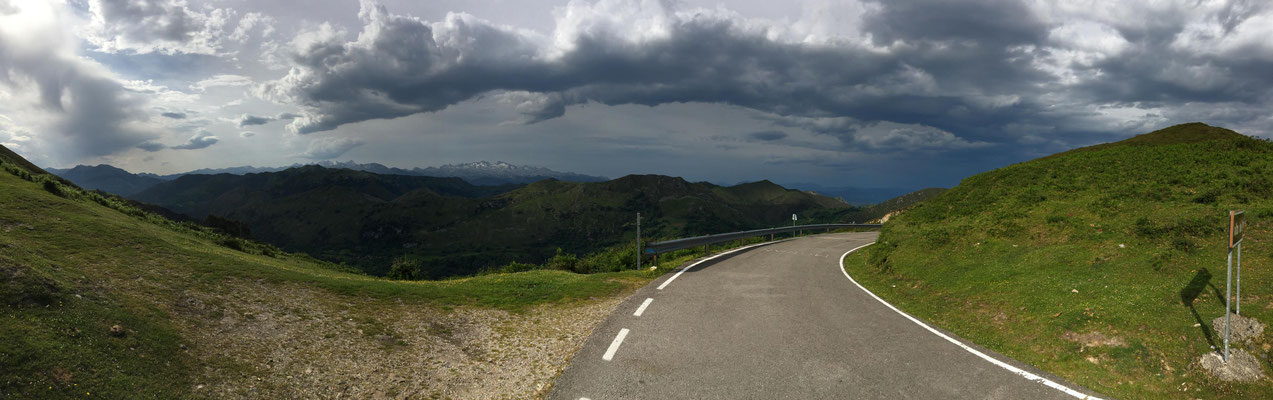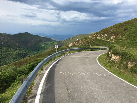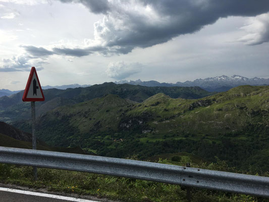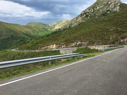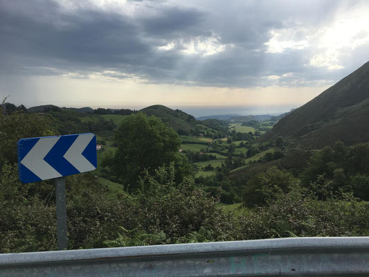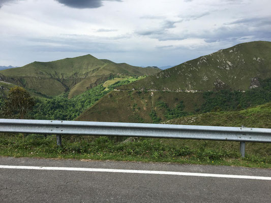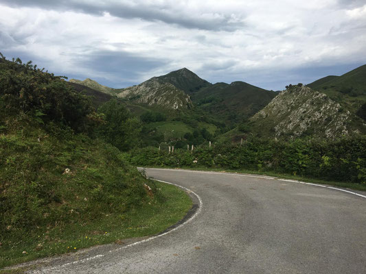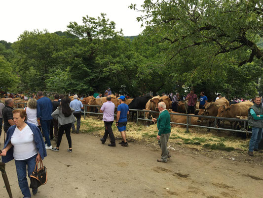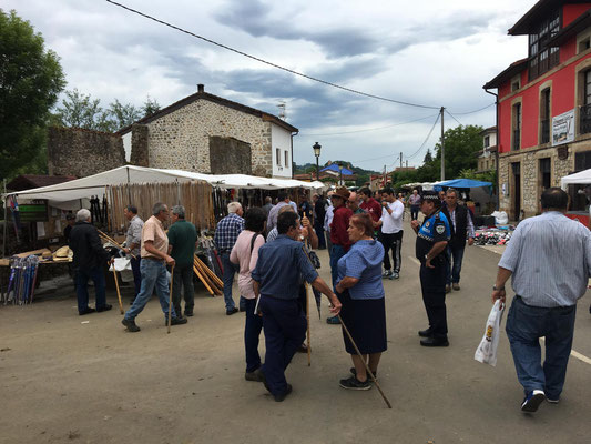 Wieder etwa 80 km, allerdings diesmal nur 2 Berge und nur ca. 1250 Höhenmeter. Wieder ist die Strecke genial: Erst Küste, dann Berge. Nur die Wetterfrösche haben es nicht so genau genommen. Eine erste Dusche gibt es bereits am ersten Anstieg, danach bleibt es allerdings trocken. Sehr schön. Es gibt wieder richtig viel Augenschmaus und zur Belohnung radel ich auch noch in einen echten Bauernmarkt. Alle Landstraßen sind zugeparkt. Stolz trägt fast jeder auf dem Markt seinen Haselnussstock durch die Gegend. Haselnussstöcke, sehr schöne und gerade aus Asturien, kann man zum fairen Preis auch an den Ständen kaufen. Allerdings spricht der Transport mit dem Rad (noch 40 km zu fahren) dagegen. Radfahren in Asturien ein echter Spaß.
