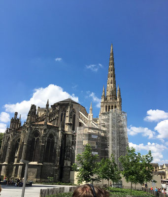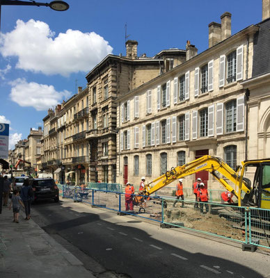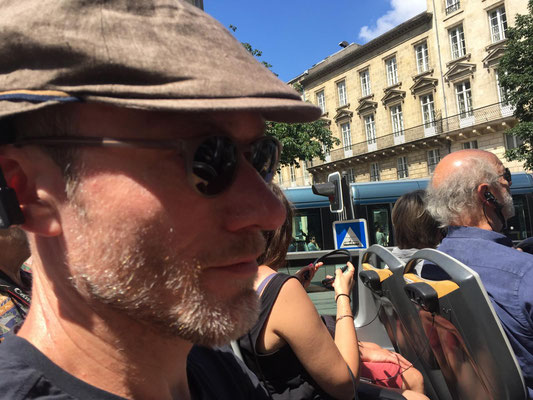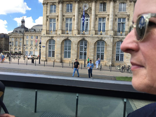 Zweiter Tag in Bordeaux: Wir machen eine Bustour durch die Stadt. Da die Stadt nicht groß ist, dauert die Tour auch nur gut eine Stunde, um alle Sehenswürdigkeiten abzufahren. Für die investierte Stunde erhält man im Gegenzug einen guten Überblick. Also unbedingt machen, wenn man hierherkommt und sich nicht auskennt. Übrigens, wir haben mal wieder Glück mit dem Wetter: Es brennt uns auf die Mütze. Nach der Bustour laufen wir zu Fuß noch einmal fast alles ab, einschließlich Shoppingmeile. Der zweite Eindruck bestätigt den ersten: Bordeaux ist sehr reizvoll.
