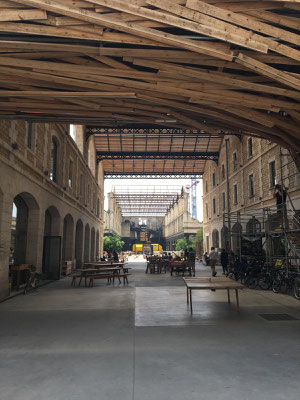 Dritter Tag, wir schnappen uns diesmal die Räder, denn wir wollen auf die andere Flussseite. Dort gibt es eine ausgediente Kaserne, die jetzt von ein paar Hipstern umgemodelt wird. Hotel, Restaurant, Skaterbahn, Eventlocation, ein paar Werkstätten usw. Wir denken, da gehören wir dazu, also nix wie hin. Natürlich nehmen wir nicht unsere eigenen Bikes, sondern mieten uns zwei Räder der Stadt. Ehrlicherweise: Sonja macht das Procedere mit der Registrierung, meine Ungeduld reicht dafür nicht aus. Die Tour führt entlang des Flusses und ist komplett entspannt. Der angesteuerte Hipstertreff (www.darwin.camp) sehr cool und hip. Abends sind wir ko vom Rumradeln und Augen-aus-dem-Kopf-schauen. Wir haben keine Lust mehr in die Stadt zu gehen. Stattdessen geht es um die Ecke unseres Appartements in eine Fromagerie. Kleiner Laden, wir rechnen mit dem Schlimmsten. Uns empfängt in einer Engelsgeduld der Eigentümer und lässt uns jeden Käse probieren, auf den wir zeigen, dazu erklärt er uns Banausen alles, rund um jeden Käse. Ein wirklich toller Abschluss eines tollen Tages.