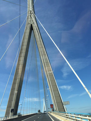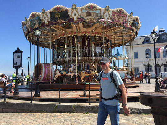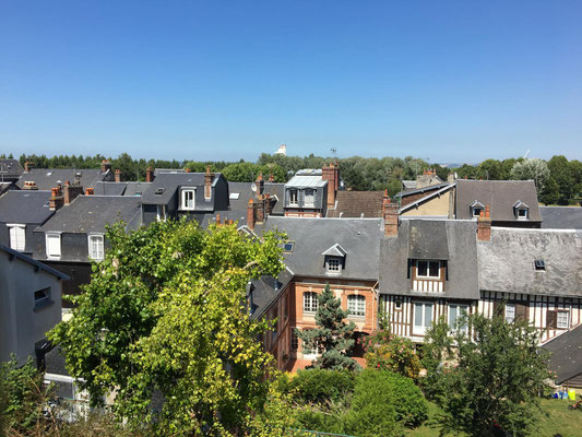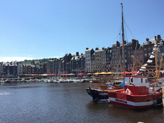Wir ziehen weiter und machen kurze Rasten in Honfleuer und Étretat. Honfleur ist ein kleines (etwas touristisches) Örtchen, an der Mündung der Seine in den Ärmelkanal. Bekannt ist der Ort vor allem als Zentrum künstlerischer Aktivitäten. Eugène Boudin, der Maler der Küstenlandschaften, wurde 1824 hier geboren. Das Musée Eugène Boudin ist ihm gewidmet und dokumentiert die malerische Atmosphäre der Stadt und der Seine-Mündung. Verschiendenste Maler, u. a. Claude Monet, Renoir und Cèzanne, kamen nach Honfleur und trafen sich oft in der Ferme St-Siméon, einem Bauernhof, der als eine der Geburtsstätten des Impressionismus gilt und heute ein stilvolles Hotel ist. Der Ort selbst ist ganz nett, vor allem aber voll mit Touristengruppen. Falls er bei jemandem auf der Strecke liegen sollte, dann kann man den Ort "mitnehmen", ansonsten sollte man keinen Umweg machen.