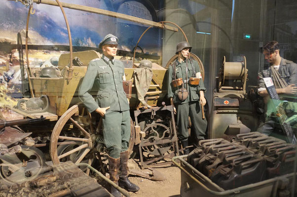 Lange nichts gehört voneinander, da denken wir, wir melden uns mal wieder. Heute geht es für uns weiter, entlang an der französischen Nordküste. Bevor wir hier diese geschichtsträchtigen Orte verlassen, machen wir am Vormittag noch einen Stop in einem der vielen Museen, die es hier zum zweiten Weltkrieg gibt: Overlord. Hier wird, wie in allen Museen in dieser Region, die Geschichte der Invasion aufbereitet. Die Ausstellungsstücke in dem von uns besuchten Museum wurden von einem französischen Bauern aus der Region zusammengetragen. Sehr interessant. Natürlich geht's in diesem Musuem um Krieg und Militär, es gibt allerdings im Museumsshop auch allerei "Devotionalien" zu erstehen, bei denen wir uns fragen, welches Publikum hier "bedient" werden soll. Der "spannende" Buchband zum Wehrmachtskanister 20 Liter (????) ist dabei nur ein eher "skurriles" Beispiel.