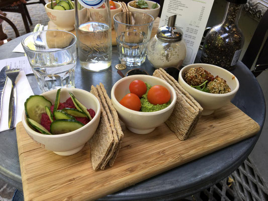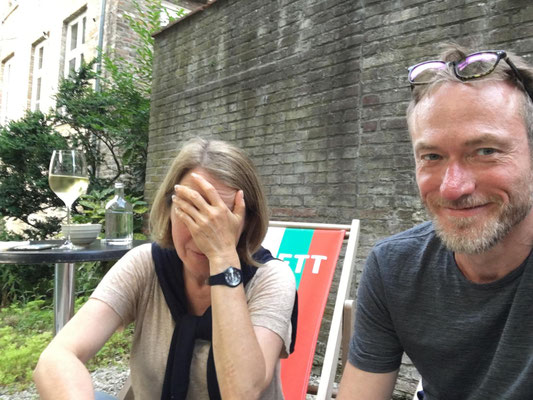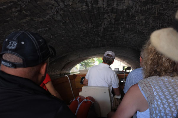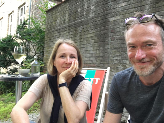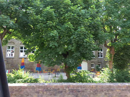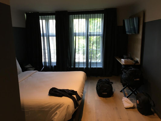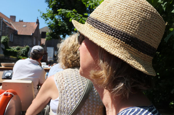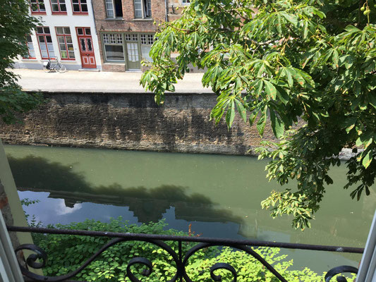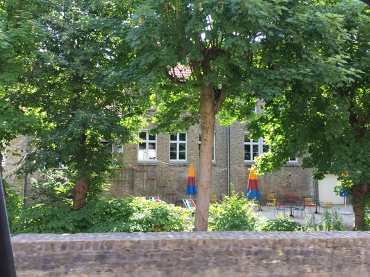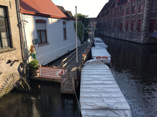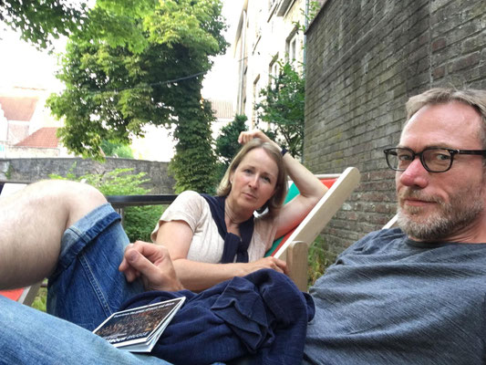 Unsere Herberge ist ein kleines Hotel am Rande der Altstadt und liegt direkt an einem Kanal. Erster Eindruck: Absolute Empfehlung (bleibt auch so). Zimmer sind nice, aber aufgrund der Hitze nicht fresh (Ausdrucksweise unserer Söhne). Ansonsten toll. Bus hat auch einen schicken Platz im Hinterhof, der Geldsack mit den Münzen kann also stecken bleiben. Von hier aus kann man alles zu Fuß erlaufen. Und einen schönen kleinen Garten zum Chillen gibt es hier auch.