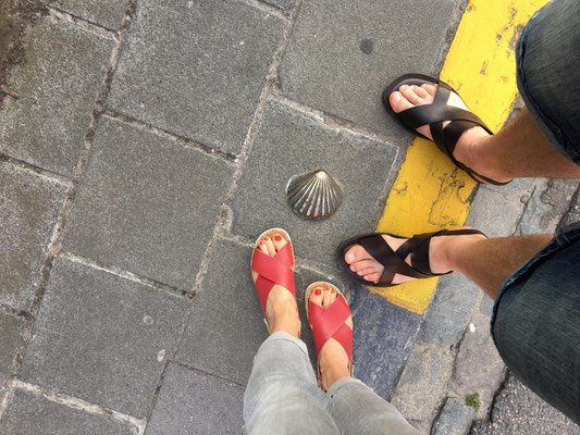 Die Stadt ist sehr klein, eine Stadtrundfahrt lohnt deshalb nicht wirklich. Stattdessen gibt es auf besonderen Wunsch einer einzelnen Dame eine kleine Kanaltour, von der aus man einen schönen Blick auf die alten Gemäuer bekommt. Es gibt an wirklich jeder Ecke Schokolade zu kaufen. Die Fritten fallen, wegen neuer Erkenntnisse, welche die junge Dame an meiner Seite aus den Untiefen des www geschürft hat, aus. Die Fritten werden hier in Nierenfett gebrutzelt. Schade. Anbei unsere Eindrücke aus den Tagen in Brügge. Fazit: Schönes Städtchen und allemal einen Besuch wert. Tipp für ein verlängertes Wochenende. Für den, der Schoki mag, sowieso. Die Muschel auf dem Pflaster ist übrigens ein Hinweis für den durch Brügge laufenden Jakobsweg.