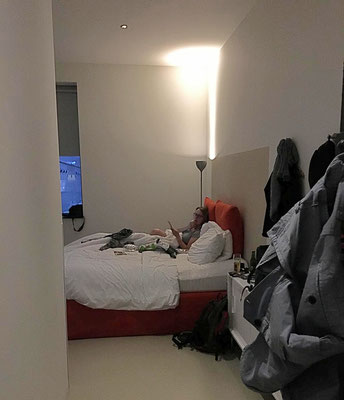 Da wir vorzeitig Landflucht begangen haben, müssen wir uns in Rotterdam eine neue Bleibe suchen. Was liegt für uns näher, als in einem ehemaligen Kraftwerk unterzukommen. Das Hotel ist ganz chillig, unser Zimmer allerdings ziemlich klein und spartanisch. Der Ausblick geht auf den Lieferanteneingang des benachbarten Einkaufszentrums. Aber, ist ja nur für eine Nacht.