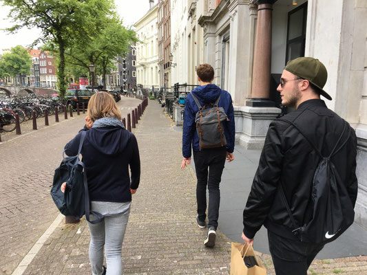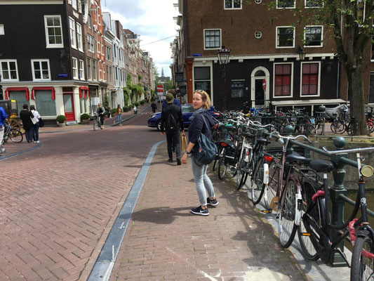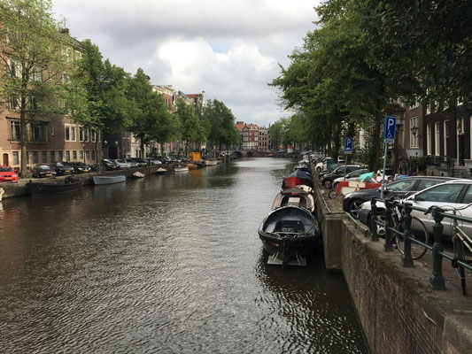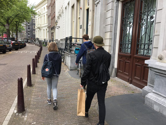 Nach Stärkung mit anschließender Ausruhphase geht es in die Stadt. Heutiger Programmpunkt: 9Straatjes. Das sind ein paar hübsche Sträßchen entlang von drei Grachten in der Innenstadt, in denen es allerlei Boutiquen und Coffeeshops gibt. Und ich meine hier natürlich nicht Tchibo und Co. Die Kids lotsen uns noch zu einem Burgerladen, doch wegen technischer Probleme ist der heute geschlossen. Wir vertagen uns und stellen fest, dass wir es nach drei Monaten noch schaffen, uns mit anderen - außer mit uns selbst - zu unterhalten, ganz schön. So eine Art Resozialisierung, bevor wir wieder in Berlin sind.