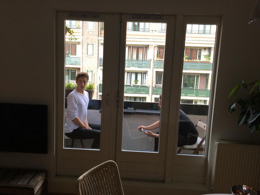 Die Jugend muss heute früh raus. Nee, liebe VerfolgerInnen des Blogs, nicht wir! Die Kids fliegen aus Berlin ein und sind schon um 8:30 Uhr in Amsterdam. Das ist die kleine Rache der Eltern, denn nur der frühe Vogel bekommt den Wurm. Kurz nach 10 Uhr klingelt es bei uns und die nicht mehr ganz taufrischen Jungerwachsenen treffen ein. Nicht wundern, es ist alles Amsterdam, auch wenn die Bilder vom Balkon eher Neapel und eine italienische Großfamilie vermuten lassen.