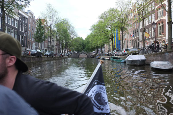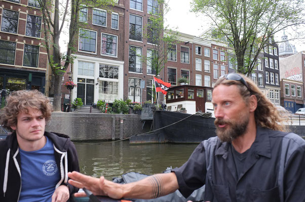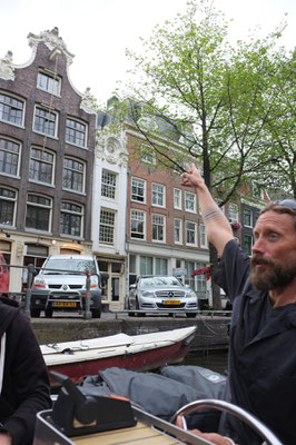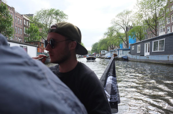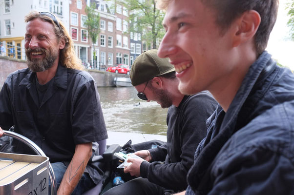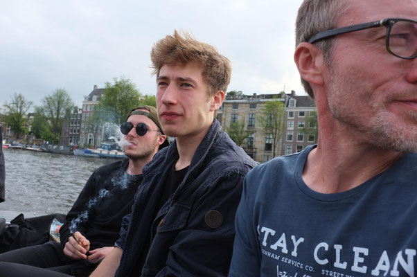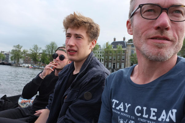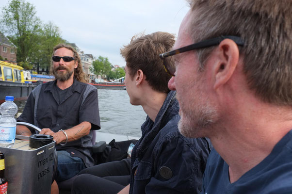 Am Abend machen wir die für Amsterdam obligatorische Grachtenfahrt, nachdem wir uns zuvor mit Ess-, Trink- und Rauchwaren eingedeckt haben. Eine wirklich sehr tolle Tour und zu unserer ganz großen Freude hält sogar das Wetter. Unser Reiseleiter ist Jeff, ein waschechter Kanadier, der erst einen Tag zuvor, von seiner Motorradtour im Himalaya, zurückgekommen ist. Wir fühlen uns hier genau richtig. Wenn jemand in Amsterdam eine solche Tour plant, dann ist www.thosedamboatguys.com ein wirklich heißer Tip.
