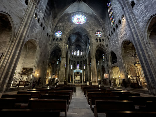 Das bekannteste Wahrzeichen der Stadt ist die Kathedrale Santa Maria, die vom 11. bis 17. Jahrhundert erbaut wurde und beeindruckend über der Stadt thront. Um zu ihrem gewaltigen eisernen Portal zu gelangen, müsst man zunächst 90 steinerne Stufen erklimmen. Doch der Aufstieg lohnt sich, denn im Inneren des prächtigen Bauwerks befindet sich das größte gotische Kirchenschiff der Welt. Die Santa Maria von Girona beherbergt dabei nicht nur beeindruckende 30 Kapellen mit zahlreichen Kostbarkeiten, sie gilt als eine der schönsten Kirchen in ganz Spanien.