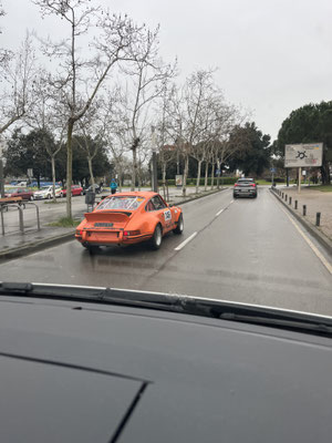 Als wir Girona verlassen, sehen wir die Rennwagen, die an diesem Wochenende an einer Rallye an der Küste teilnehmen. Wir denken, die Rallyefahrer werden sich freuen, dass es immer noch regnet und man besser um jede Kurve driften kann.