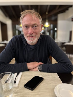 Abends haben wir noch bei Carrefour unsere Vorräte aufgefüllt, wir sind für die kommenden Tage abgesichert. ;o) Später gehen wir noch auf unserem Golfplatz-Restaurant etwas essen. Wir sind die einzigen im Restaurant und sitzen in der Mitte eines riesigen Raumes. In einem Nebenraum klingt sehr lautstark eine 55 Geburtstagsfeier mit Schlagern aus den 2000er Jahren aus. Sehr schöner Abschluss des Tages.