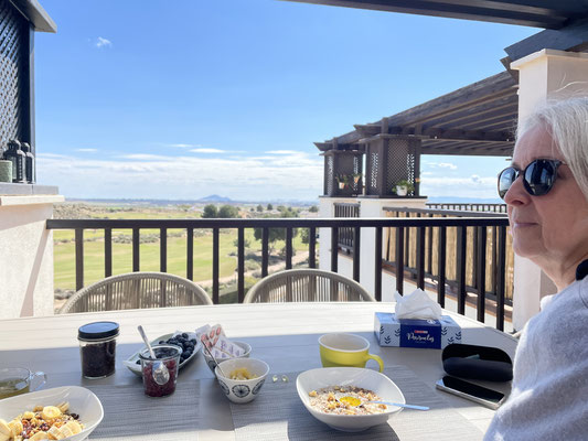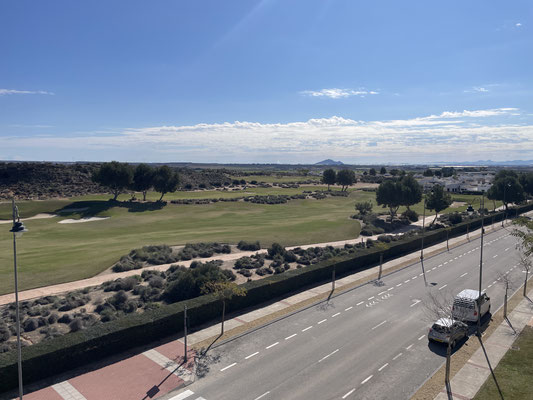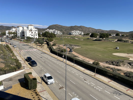 Wir sind auf einem Golfplatz südlich von Murcia gelandet. Hier haben wir für den nächsten 10 Tage ein Appartement auf dem Gelände. Es handelt sich um einen Golfplatz der Anfang der 2000er erbaut wurde. Um den eigentlichen Golfplatz entstanden eine Vielzahl von Reihenhäusern sowie mehrere große Appartementhäuser. Etwas Abseits, aber mit einem tollen Ausblick von unserer Terrasse.