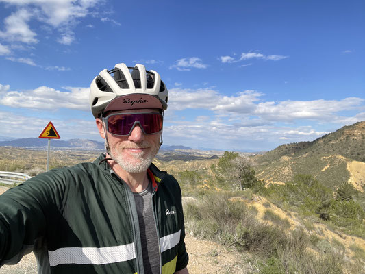 Während Sonja chillt, mache ich die Räder fertig und fahre meine erste Tour Richtung Murcia durch die Berge. Insgesamt eine schöne Tour mit tollen Ausblicken auf Murcia und die Umgebung. Die Straßen sind etwas ruppig und uneben, aber die Landschaft, insbesondere die Täler sind gut zu fahren. Auf der ersten Hälfte ist der Autoverkehr noch recht hoch und die kurvenreichen Straße nicht wirklich sehr breit. Nicht wirklich etwas für Sonja. Die Tour ist ca. 72 km lang und hat ca.1080 Hm. Ein schöner erster Tag in Murcia.