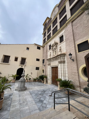 Nach unserer kleinen deutschen Einkaufstour, geht es zur Konzerthalle, wo wir parken. Wir laufen entlang des Rio Segura zur Kathedrale. Unterwegs fällt uns auf, dass doch ziemlich viel sehr gut gekleidete Familien unterwegs sind. Wir schauen an uns herunter, na geht schon, irgendwie.