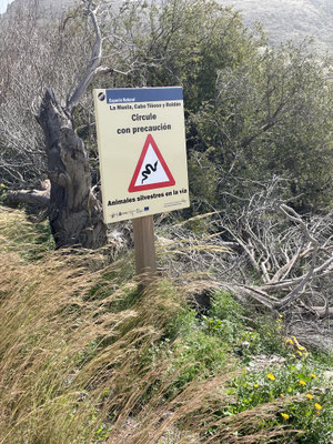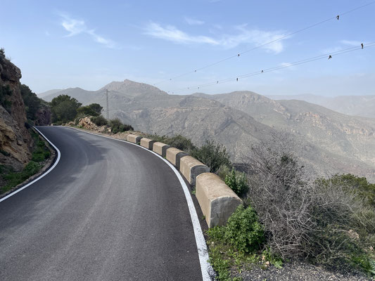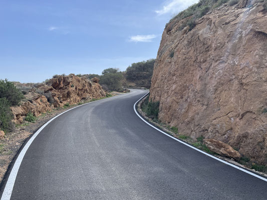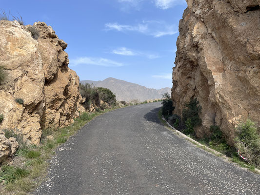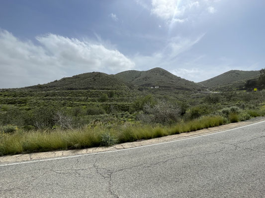 Angekommen an der Küste geht es direkt Richtung Osten entlang am Meer. Nach einigen Kilometern zweigt der Weg ab in ein Naturschutzgebiet zu meinem Ziel des heutigen Tages, dem Batería de Castillitos. Immer bergauf. Die Straße sind, bis auf die letzten zwei Kilometer, eher Gravelstrecken mit riesigen Schlaglöchern.
