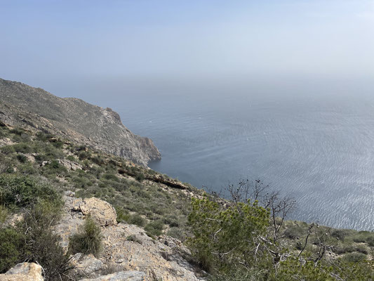 Es ist diesig und windig, aber heute ist der Tag, an dem ich mit dem Rad an die Küste fahren will. Mein Ziel: Batería de Castillitos. Auf dem Rückweg soll ich permanenten Gegenwind haben, was sich später bestätigen wird. Aber nicht so schlimm.