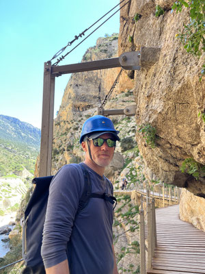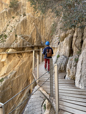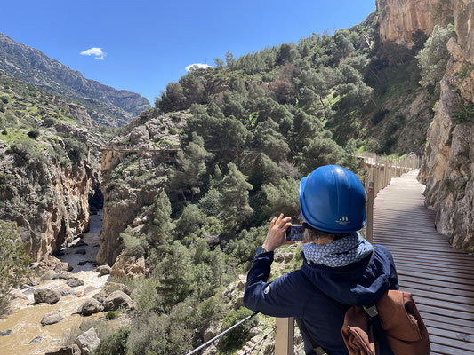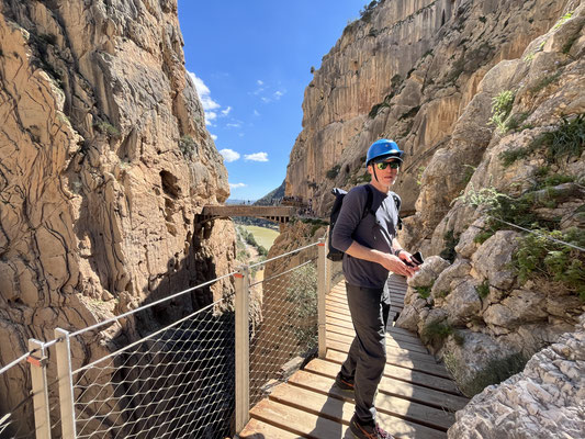 Nach der Einweisung zum Verhalten auf der Strecke bekommen wir noch die obligatorischen Helme und wir legen los. Wie auf der Website beschrieben ist der Weg durchweg spektakulär. Unglaubliche Ausblicke, tolle Natur und vor allem ein wirklich einzigartiger Weg entlamng des Canyons. Der zudem noch sehr sicher ist. Ich könnte jetzt noch viel schreiben, aber der Caminito del Rey lebt von Bildern. Bitte schön.
