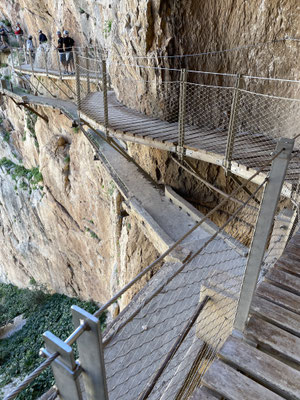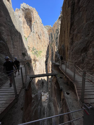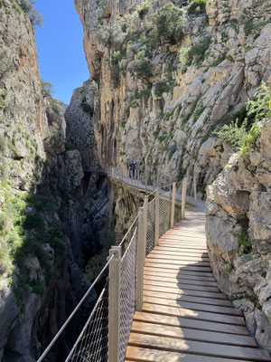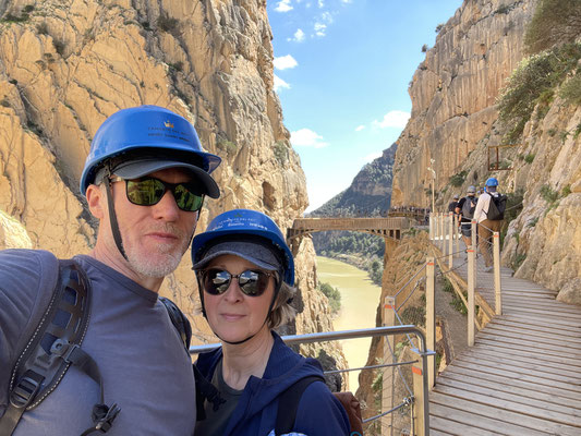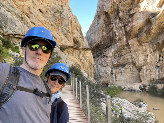 Die Wanderung dauert ca 2,5 h und ist wirklich großartig. Wir nehmen den Shuttlebus vom Ausgang des Caminito del Rey zu unserem Parkplatz am Besucherzentrum. Von dort aus geht es direkt in unsere Behausung. Diesmal parken wir zwei Straßen unter unserer Sackgasse, denn morgen wollen wir wieder auf Tour. Malaga steht auf dem Programm.