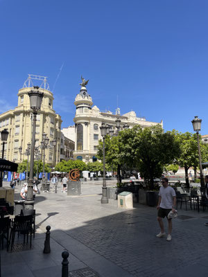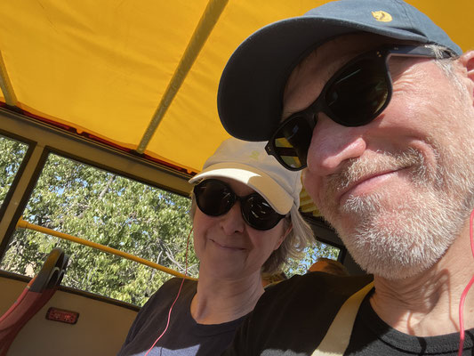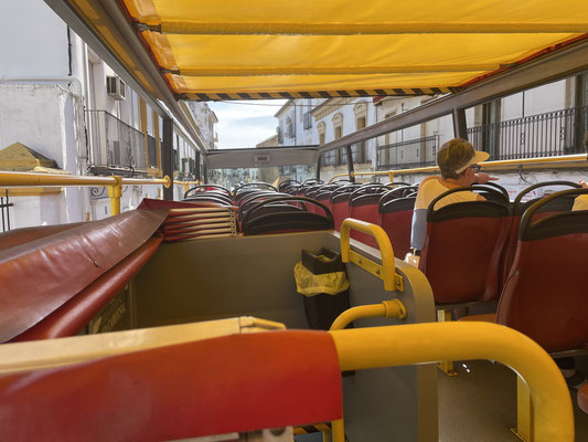 Nachdem wir bereits einige Zeit zu Fuß unterwegs sind, wird Sonja etwas schneller, sie erblickt unverhofft einen Hop On - Hop Off Bus. Sie fragt: Sollen wir...? Angesichts der ungewohnt hohen Temperaturen eine sehr gute Idee die Stadt auf entspannte Weise kennen zu lernen. Wir entern den Bus und fallen in die Sitze. Kopfhörer rein und ab geht die wilde Fahrt entlang aller Sehenswürdigkeiten der Stadt. Wir genießen es.