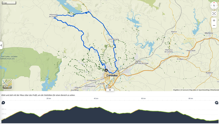 Die letzten Tage waren etwas anstrengend, Sonja braucht eine Pause und ich nutze die Gelegenheit eine weitere Radtour zu machen. Es ist nicht mehr so warm und es soll nicht, oder nur wenig regnen. Ich fahre in den Norden von Córdoba, zu einem Stausee und wieder zurück.