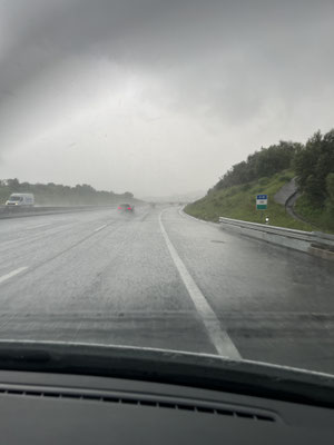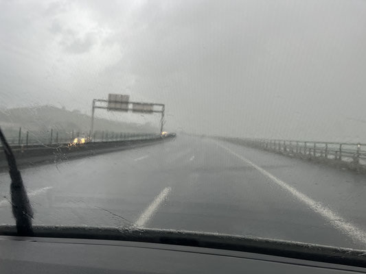 Kurz vor Lissabon fängt es an wie aus Eimern zu regnen. Die Mitstreiter auf der Autobahn fahren langsam, die Warnblinkanlagen werden eingeschalten, denn auf der Autobahn steht das Wasser. Bemerkenswert daran, es ist ein Hang und wir fahren bergauf.