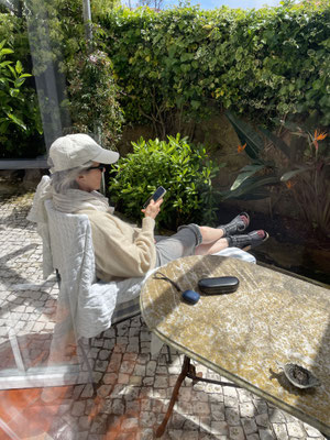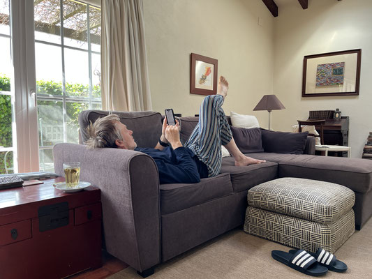 Zum Frühstück, gegen 12 Uhr, gibt es für mich eine rote Pille und dann ab aufs Sofa. Sonja nutzt am Nachmittag die zwischenzeitlichen Sonnenphasen für ein kleines Sonnenbad im Garten. Durch ein Telefonat mit Jan weiß ich, wo jetzt Sommer ist: Berlin, 25 Grad und Sonne...schön, es geht also auch anders...