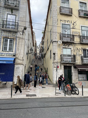 Nach dem erfolgreichen Test, gestern in Cascais, fahren wir heute nach Lissabon. Wir haben uns bewusst keine touristischen Highlights vorgenommen (wir waren bereits zwei Mal in Lissabon), sondern wollen nur ein wenig durch die Gassen von Chiado schlendern.
