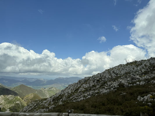 Wir fahren heute zu einem der Highlights in Asturien, nach Covadonga. Besser gesagt wollen wir uns die zwei Bergseen anschauen. Am Morgen regnet es noch, wie vorausgesagt, der Nachmittag soll allerdings trocken bleiben. Die Seen sind ca. 50 km von unserem Appartement entfernt. Dauer der Fahrt 1 h 10 min., was schon mal einen Hinweis darauf gibt, dass es wieder einmal kurvig wird. Motorradfreunde hätten hier ihren Spaß.