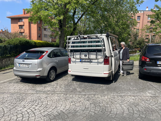 Wir ziehen weiter und treffen uns morgen in Bilbao mit Finia, sehr schön. Nach einem etwas anstregenden Abendessen am Vorabend (wir haben die Schwägerin von Dave kennenlernen dürfen), freuen wir uns, heute nach Bilbao zu fahren. Die Strecke ist für unsere Verhältnisse extrem kurz, nur ca. 250 km. Etwas ist anders als bei den anderen Fahrten: Sonja fährt fast die komplette Strecke, weil ich mich mal wieder verhoben habe. Kompletter Mist.
