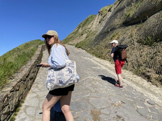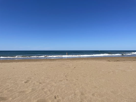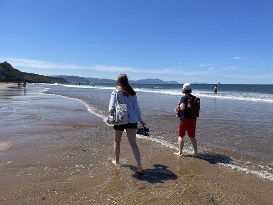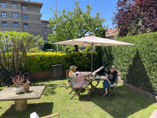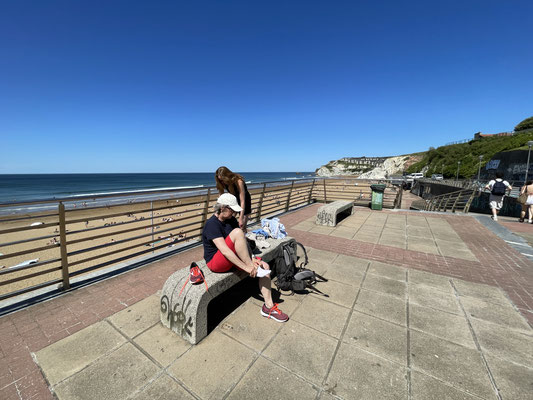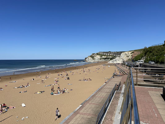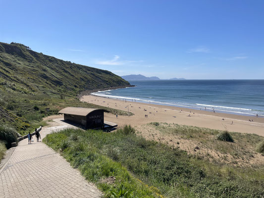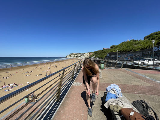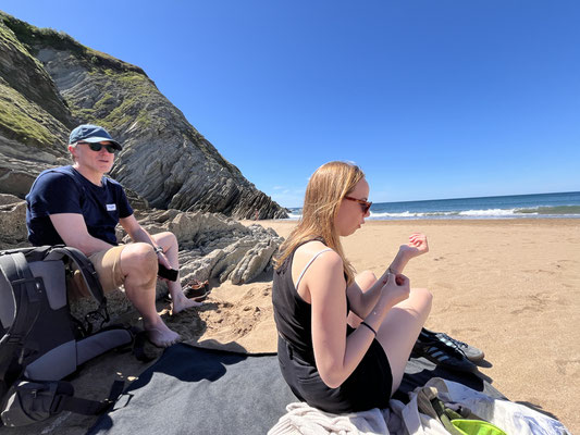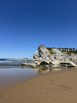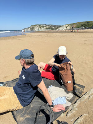 Die Sonne scheint und Strom haben wir auch. Wie schön. Wir beschließen nach dem Frühstück unsere Sachen zu packen und einen Ausflug zum Strand zu machen. Zum ersten Mal Strandspaziergang und ein wenig Sonnenbaden nach 2 Monaten on Tour. Ein schöner Plan. Die beiden Buchten - nördlich von Bilbao -, die wir heute ansteuern sind nur ca. 15 min. von unserer Wohnung entfernt. Wir spazieren am Meer entlang und Finia wagt einen erstes kurzes Bad im Meer. Uns ist es zu kalt.