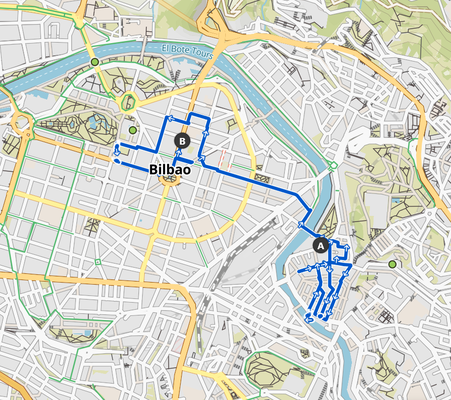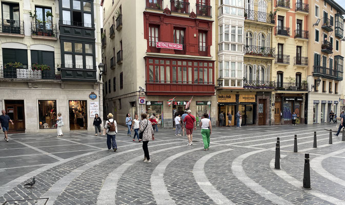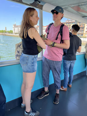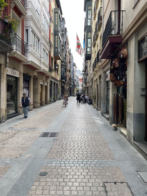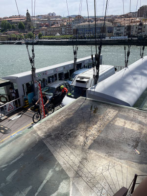 Die Sonne scheint. Unser Plan: Wir fahren nach Bilbao und schauen uns die Altstadt, und hier insbesondere die sieben Straßen (Siete Calles), an. Unseren Bus lassen wir stehen und nehmen stattdessen Fähre, Taxi und öffentliche Busse.