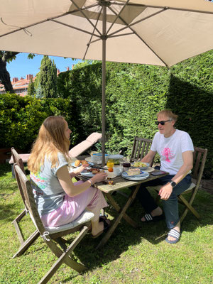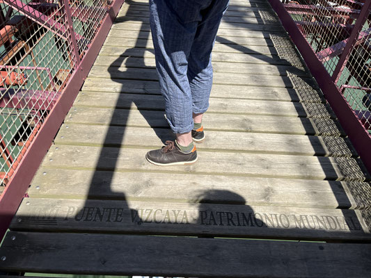 Bevor wir alle starten, hole ich noch schnell meine Gravelreifen im Fahrradladen ab. Ich bin begeistert, dass es geklappt hat. Danach laufen wir von Leioa (unserem Vorort) zu einem der Wahrzeichen Bilbaos: Bizkaido Zubia.