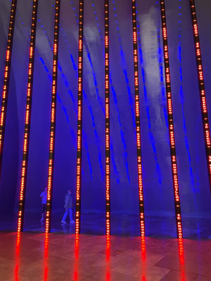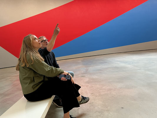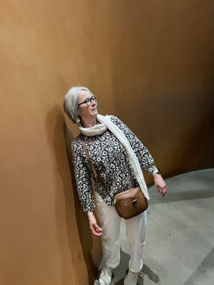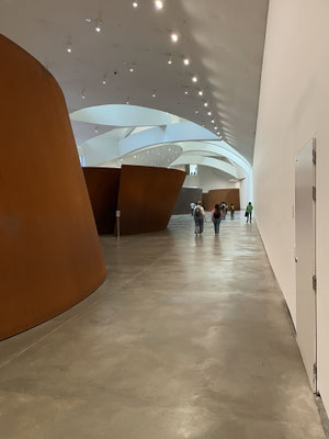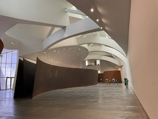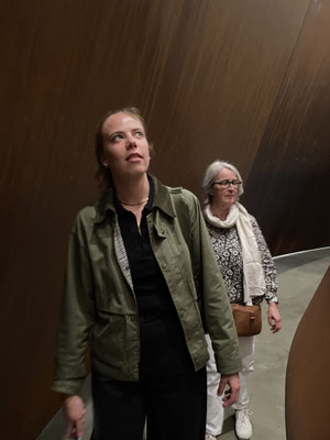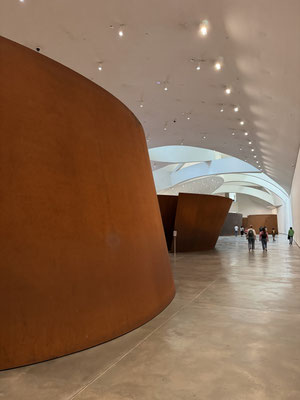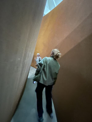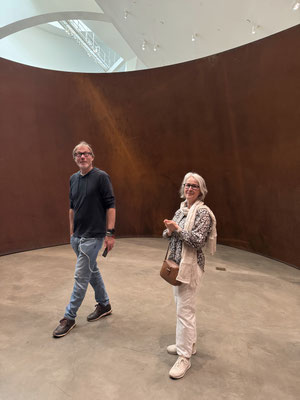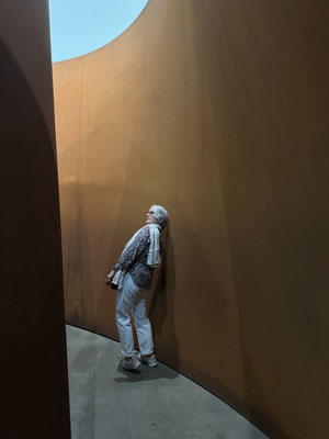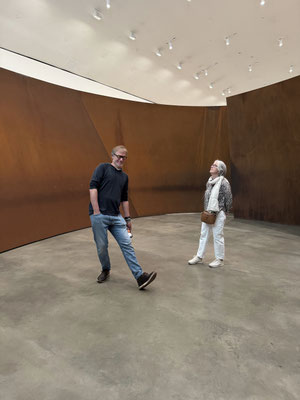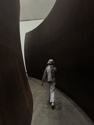Zunächst schauen wir uns die rostroten Stahlkonstruktionen von Richard Serra an, die im Erdgeschoss stehen. Sonja und ich sehen sie zum dritten Mal, aber sie sind immer noch beeindruckend.