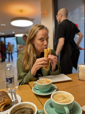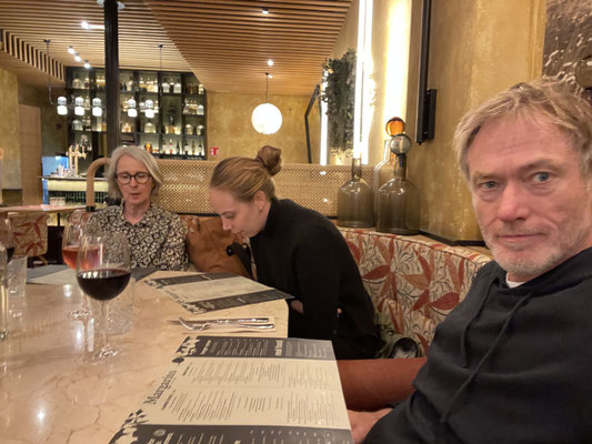 Wir gehen in ein Café unweit vom Guggenheim und nehmen einen Kaffee, danach schnappen wir noch ein wenig Luft, und spazieren noch durch die Innenstadt. Wir können noch nicht nach Hause, weil wir abends noch in ein vegetarisches Restaurant wollen. Kurz nachdem wir gegen 19:30 Uhr im Restaurant ankommen, bekommt Finia eine Mail aus Den Haag. Es geht um ein Zimmer, auf das sich Finia beworben hat. Die Mieterin fragt, ob Finia nicht abends noch für ein Interview zur Verfügung stehen könnte. Na klar, geht noch. Wir essen und fahren mit dem Taxi nach Hause, damit Finia ihr Interview führen kann. Nach dem Interview, das ganz gut gelaufen ist, streamen wir noch einen Tatort aus der ARD Mediathek. Da nichts mehr in den Tag passt, geht es in die Kojen. Was für ein voller und toller Tag.