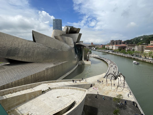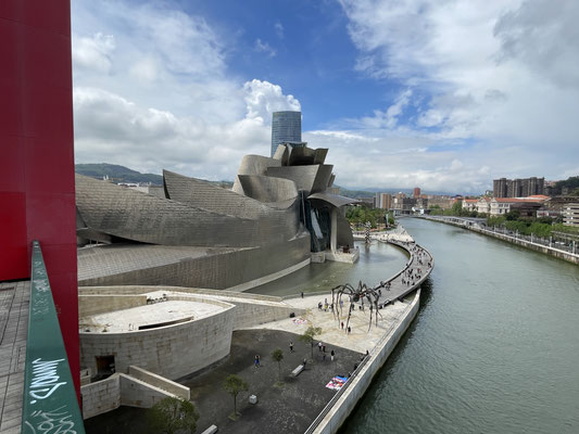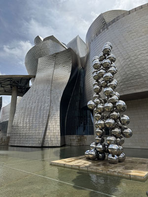 Am heutigen Tag steht Kultur auf dem Programm. Wir gehen ins Guggenheim in Bilbao. Seit dem das Guggenheim in Bilbao eröffnet hat ist es DAS Wahrzeichen der Stadt. Wir finden zurecht. Sowohl der Bau selbst, als auch die Ausstellungen sind spektakulär. Wenn man sich etwas für moderne Kunst interessierst, dann ist das Guggenheim ein absolutes Muss im Baskenland.