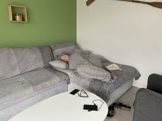 Sonja, in der Zwischenzeit auch von ihrer Tour zurückgekommen, nimmt, nach dem Kaffee im Anschluss ihrer Tour, lieber einen kleinen Napp. Fühlt sich hier an wie Urlaub.