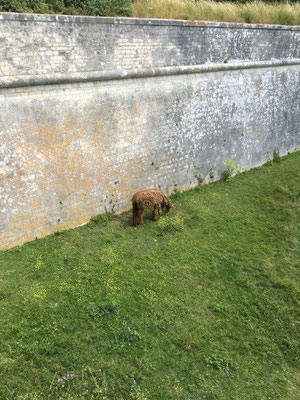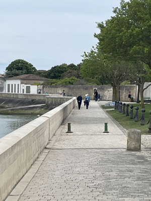 Und weil wir schon mal da sind, gehen wir natürlich noch ins Dorf. Ein wirklich netter Ort, mit einem schönen Hafen und zur Landseite umgeben von einem Burggraben. Leider sind am heutigen Tage keine der zotteligen Esel, in dem mittlerweile trockenen Burggraben, zu sehen. Wer es nicht weiß: Esel sind meine Lieblingstiere, zottelige besonders.