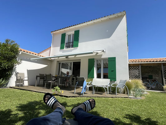 Nach dem aufregenden Tag gestern, lassen wir es heute etwas langsamer angehen. Zudem haben wir einen verwegenen Plan. Bevor wir abends ESC schauen, wollen wir auf der Insel Essen gehen. Wir haben es tatsächlich längere Zeit nicht gemacht, weil es sich auf der Insel manchmal ein wenig schwierig gestaltet, wenn man vegetarisch essen möchte. Die meisten Lokale haben keine Website und Reservierungen gehen nur telefonisch (meistens französisch). Sonja hat aber nicht aufgegeben, und ein Lokal im Ort ausfindig gemacht: Le Pas Sage Du Marché (direkt am Markt in La Flotte).