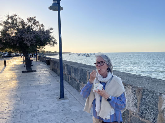 Das Restaurant liegt direkt am Markt von La Flotte. Wir sind die ersten Gäste, als wir um 19 Uhr vor der Tür stehen. Das Lokal hat abends ürigens schöne Öffnungszeiten von 19 Uhr bis 21 Uhr. Vielleicht ist deshalb auch die Bedienung ausgesprochen freundlich. Wir finden es auf jeden Fall toll hier zu sein. Nach dem Restaurant geht es noch schnell zum Eisdealer, dem Sonja vertraut. Entgegen meiner sonstigen Gepflogenheit nehme ich diesmal auch ein Eis - nicht zu sehen, weil ich sehr schnell esse. Im Anschluß geht es direkt vor den Fernseher und wir entspannen beim ESC. Am Ende gewinnt Österreich und wir freuen uns mit.